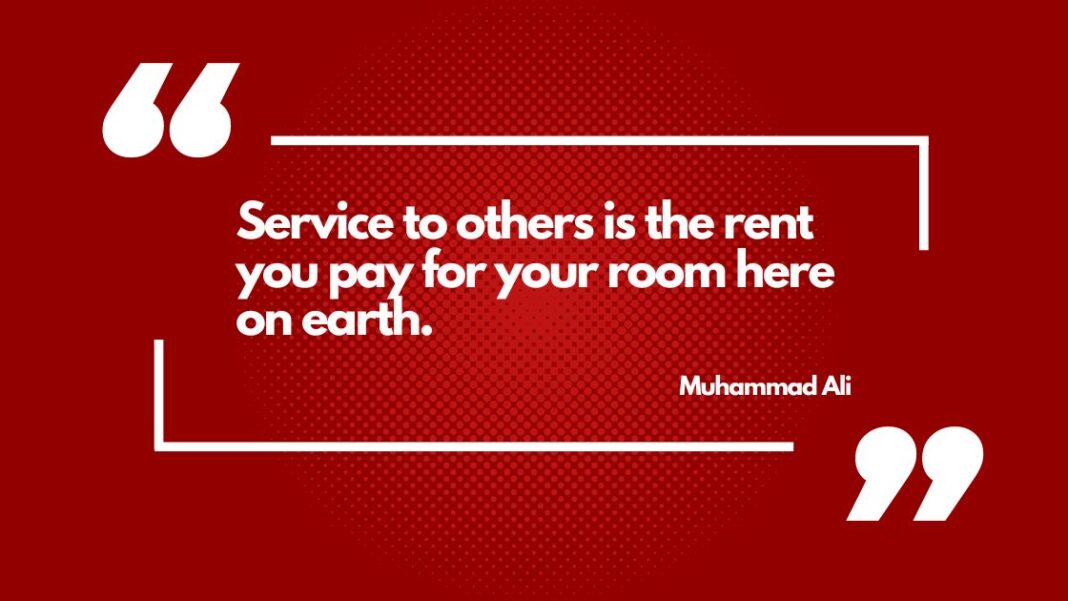 Muhammad Ali, known worldwide as one of the greatest boxers to ever step into the ring, was also a man of profound wisdom outside of sport. Among his many memorable quotes, one stands out for its clarity and universal truth: “Service to others is the rent you pay for your room here on earth.” This simple yet powerful idea transcends boxing, fame, or personal achievement, and instead focuses on something every one of us can do — give back.